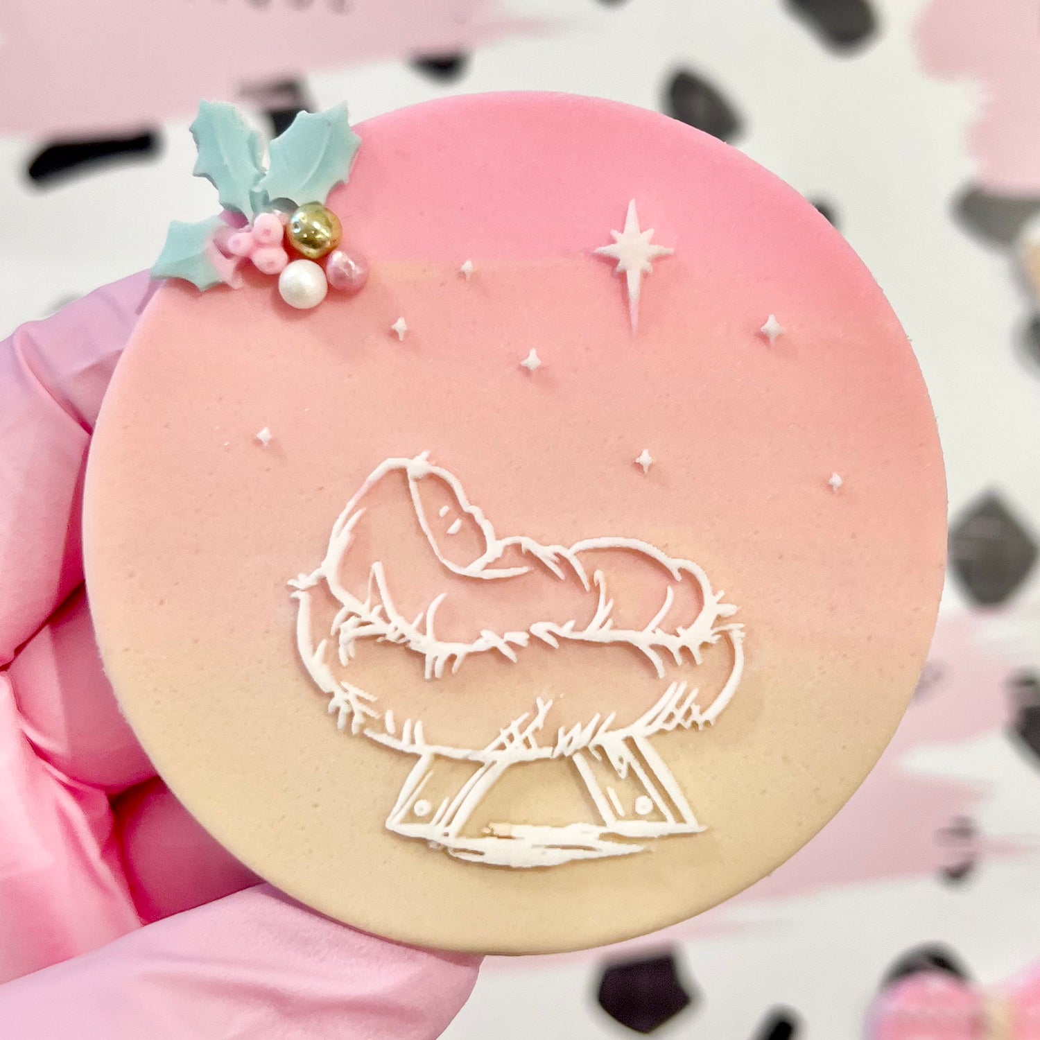 BABY JESUS IN CRIB - RAISED EMBOSSER