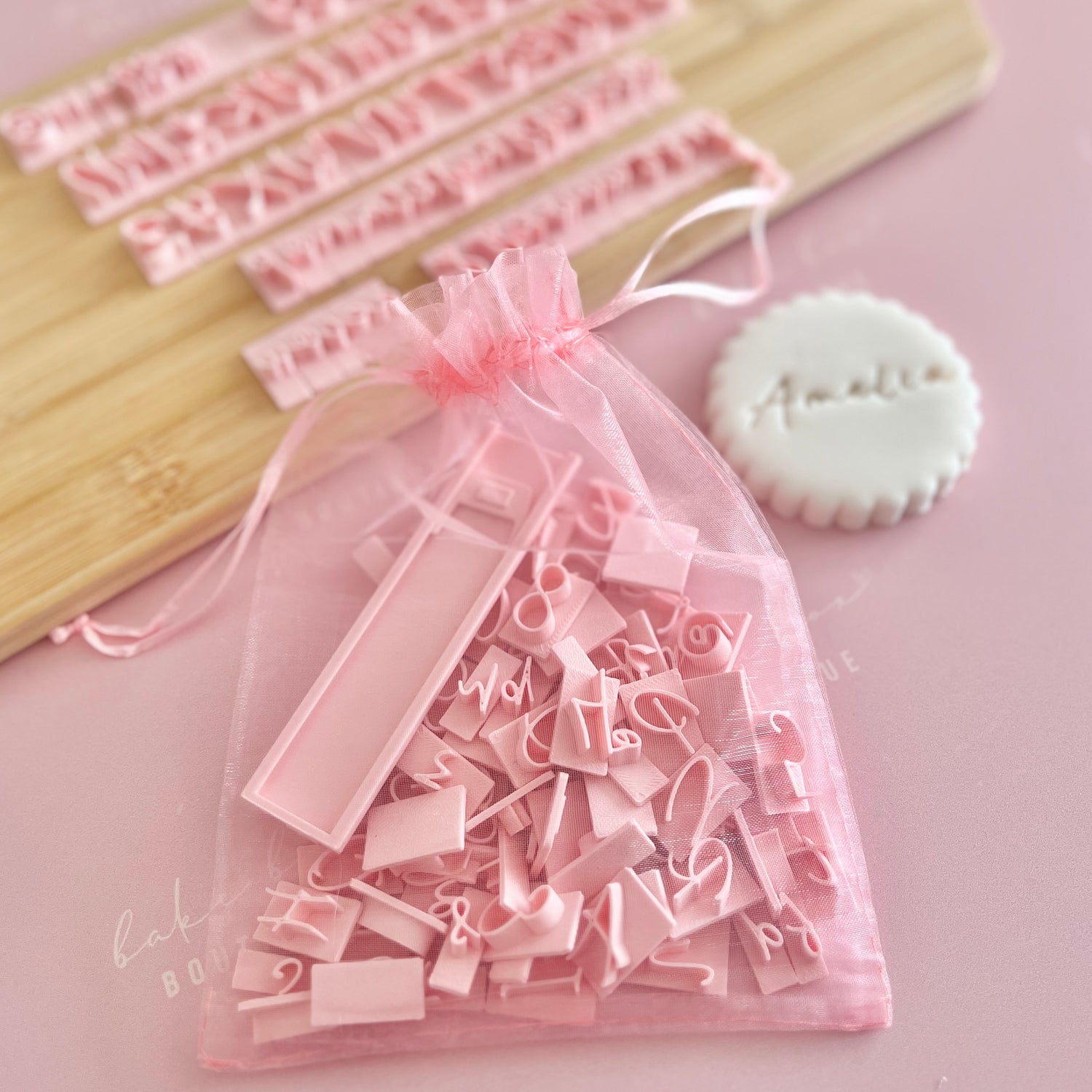 How to use: Simply choose your letters and slide into the holder bar, then slide the stopper into the bar and you’re good to go. Press face down into your icing fondant to create an ultra deep impression. Can be reused over and over again.